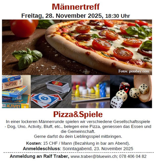 Am Freitag, 28. November 2025 laden wir alle Männer zu einem geselligen Abend ein.