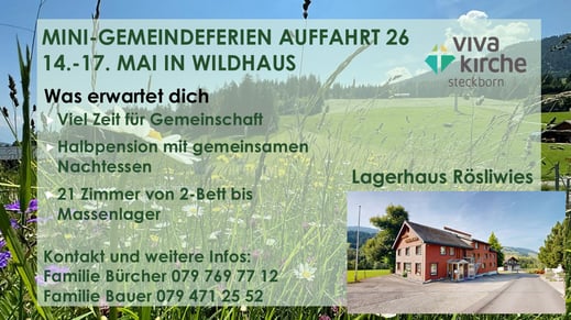 Daher: von Auffahrt bis Sonntag, 14.-17. Mai 2026 finden unsere Mini-Gemeindeferien in Wildhaus statt.