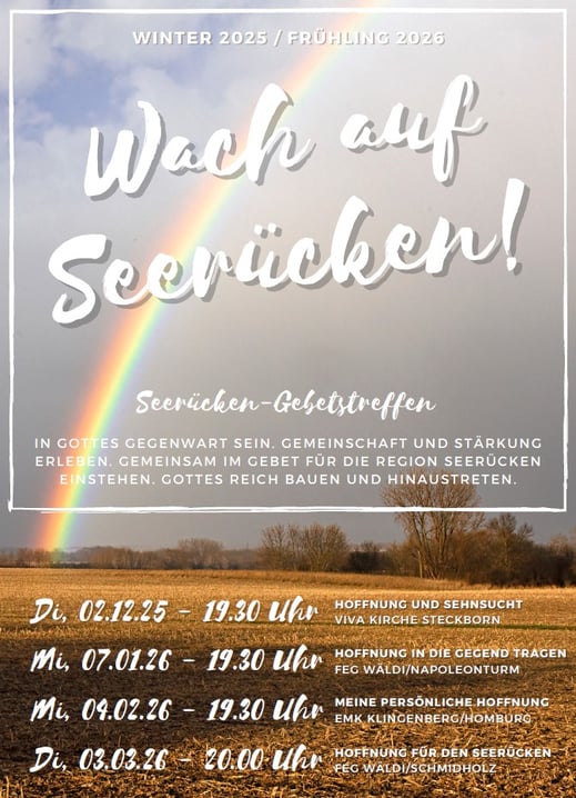 Auch im Winter 2025 / Frühling 2026 laden wir - die EMK Klingenberg, FEG Wäldi und Viva Kirche Steckborn - zu vier gemeinsamen Gebetsabende ein.